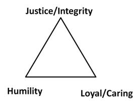 When we put these three traits as points on a triangle, we can see how they interact with each other. Each interaction point is a key aspect of Christian culture in an organization. If one of these aspects were missing, then the culture could turn toxic. Let’s look at these aspects and examine how they fit into the workplace.